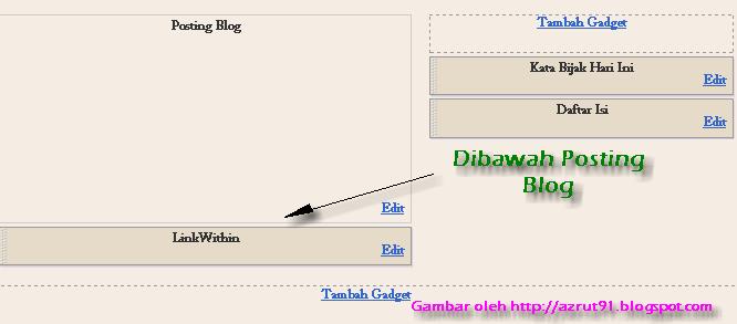 - Drag and Drop widget LinkWithin ke bagian bawah Posting Blog, sehingga hasilnya akan seperti gambar dibawah ini