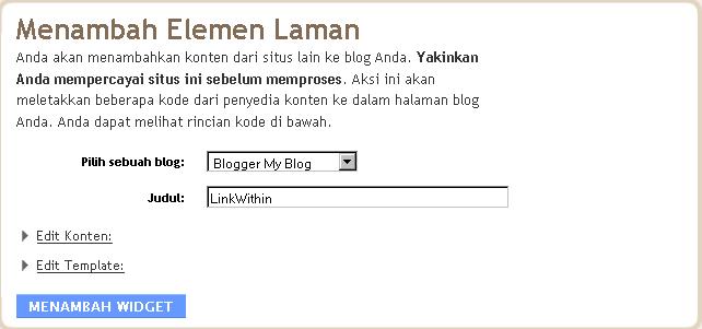 Selain menariknya fitur yang ditawarkan, cara penginstalan widget related post bergambar dari LinkWithin ini sangat mudah, disini saya akan berbagi cara penginsatallan widget related post bergambar dari linkwithin di blogger, caranya adalah sbb: